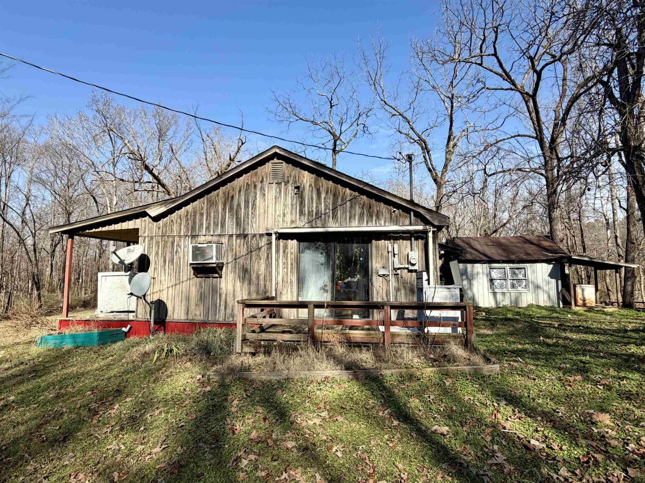 Make this 1 bedroom, 1 bathroom cabin your own, beautifully placed on 1 acre of land overlooking a peaceful creek. This cozy cabin features a storage building with lean-to and a pole barn with three bays, perfect for storing your vehicle, boat, and RV. Although the cabin requires some tender loving care, its natural beauty and extra features make it an attractive option for those seeking a peaceful retreat.